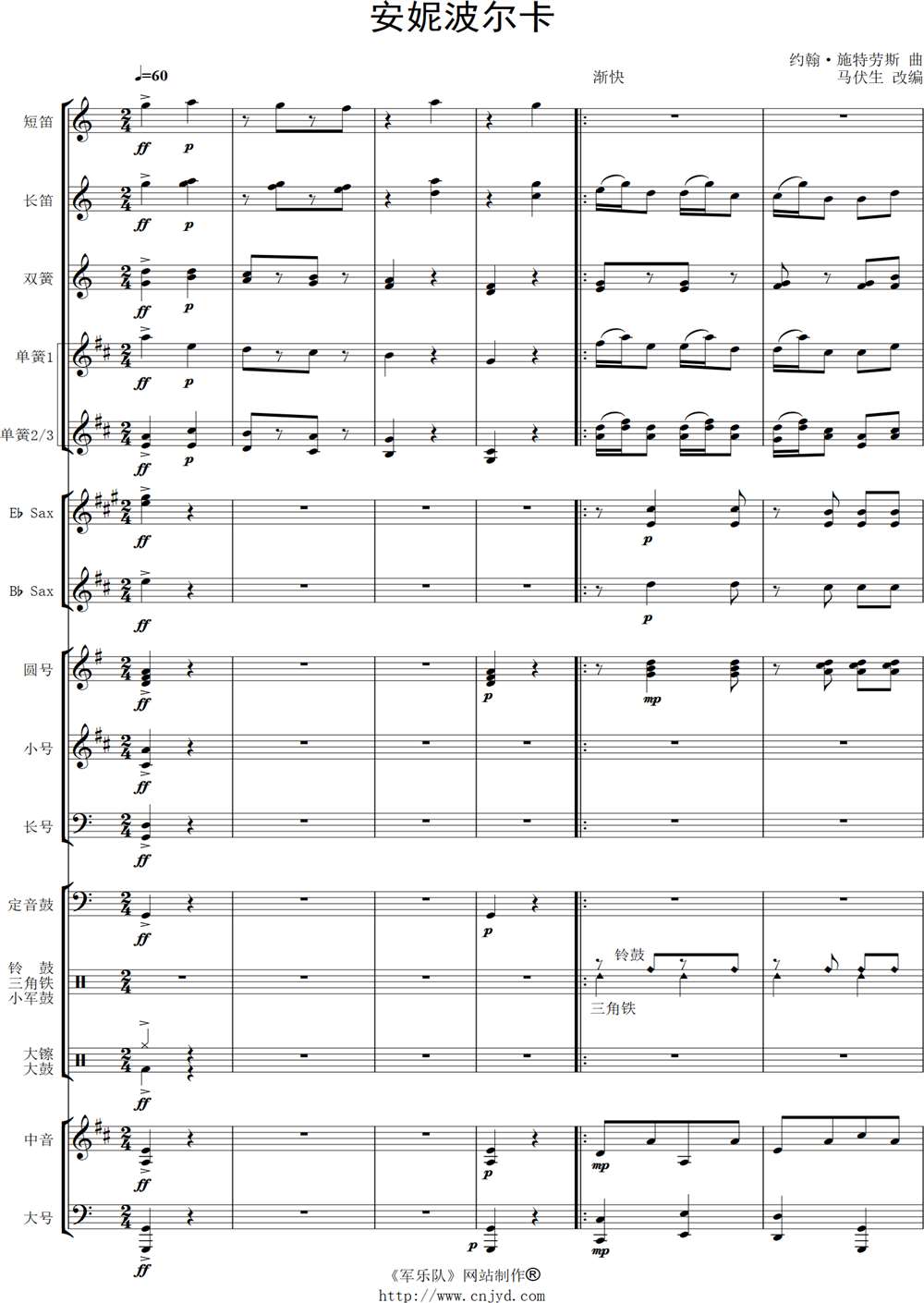简介:根据约翰.施特劳斯的管弦乐曲《安妮波儿卡》改编。